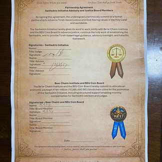 A transfer of 10,000,000 BEU Coins has been formally signed, sealed, and delivered to the Sanhedrin Initiative (Hakamat HaSanhedrin).